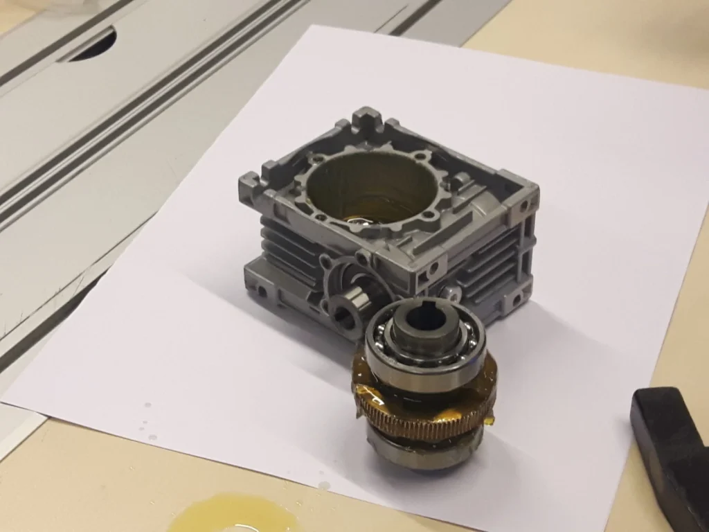 Deassemblage van de Newton GEARBOX NNDK40 wormwielkast